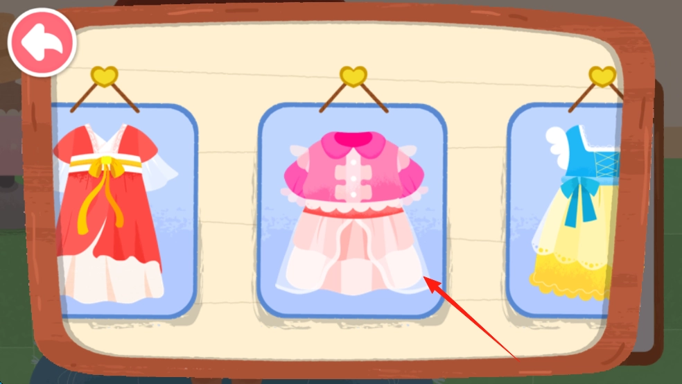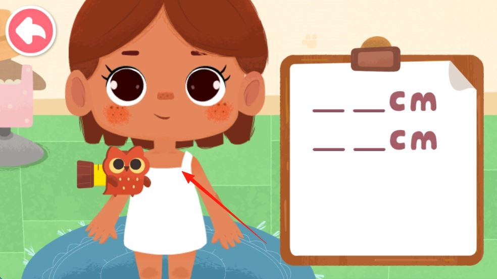 点击熊猫旁边的服装图标,进入测量界面,量取尺寸后,就能为女孩挑选合身的衣服了。