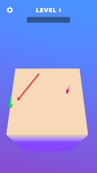 弹射操作:调整粉色弹射物角度、力度,向绿色目标发射。