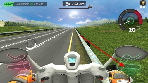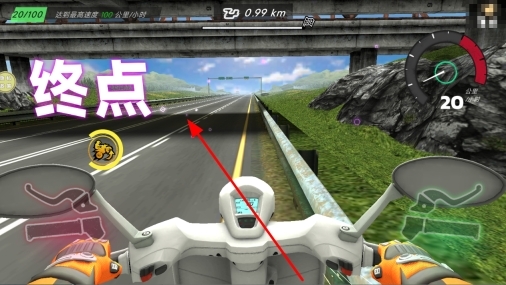 2、操控摩托车加速,点击油门加速区域,使摩托在赛道上疾驰。过程中需留意把控行驶方向,防止偏离赛道。