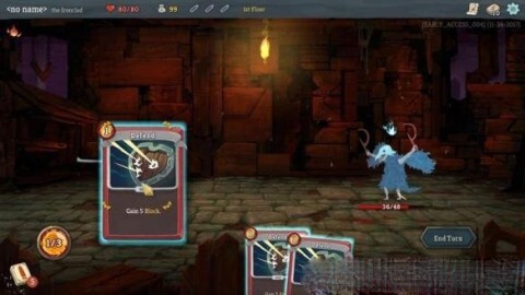 5. 同理,你能够把“防御”卡拖到自身,以此增加5点格挡,让敌人下一回合对你的攻击伤害降低5点。但要谨记,若没有其他道具或卡牌助力,格挡点数会在回合结束后消失。