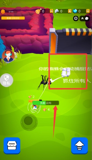 开局先操控蜘蛛四处移动,等熟悉操作后,就可以用吐丝技能去捕捉人类和动物了。