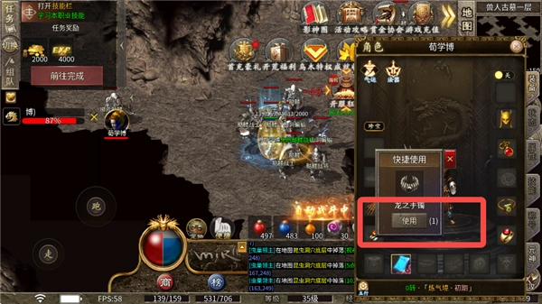 3、玩家可前往各个副本中打怪刷取高级装备。