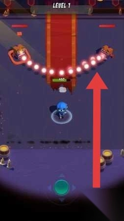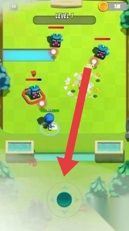 在Level-9战斗场景中,你可以点击屏幕下方的虚拟摇杆(箭头所指位置),以此来操控角色移动,避开敌人的攻击。