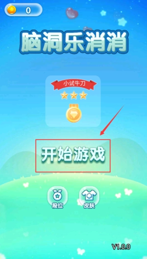 点击红框开始游戏按钮,进入脑洞乐消消第一关。
