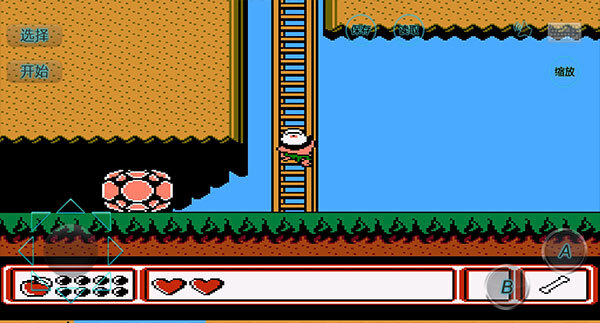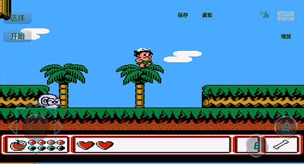 5、屏幕底部的爱心代表你的生命值,关卡中会出现各式各样的怪物,点击B键消灭它们后会掉落特殊水果,拾取这些水果就能增加体力值。