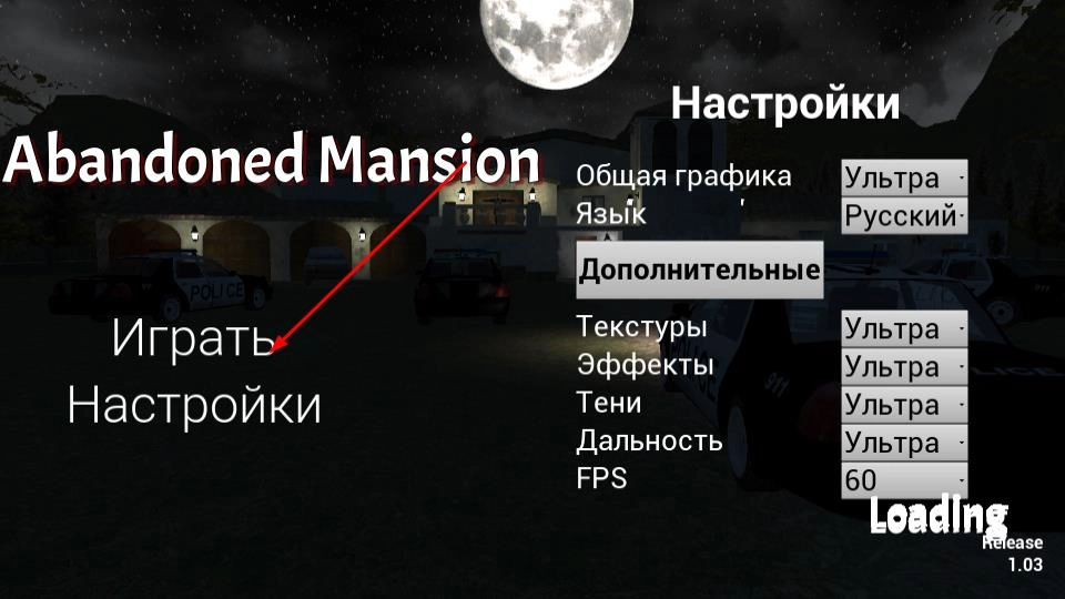 首先玩家要在游戏主界面找到Играть选项并点击,随后进入月夜笼罩下的废弃豪宅场景,由此开启一段惊悚的探索旅程。