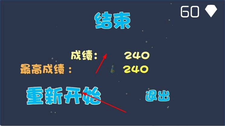 若成功堆叠到一定高度,结束后会显示成绩,你可以选择重新开始以挑战更高分数。