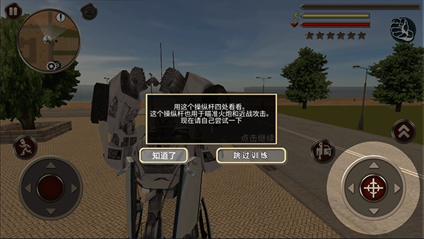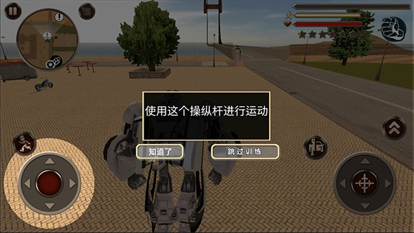 进入游戏后,我们可以通过左下角的轮盘来操控机器人移动。