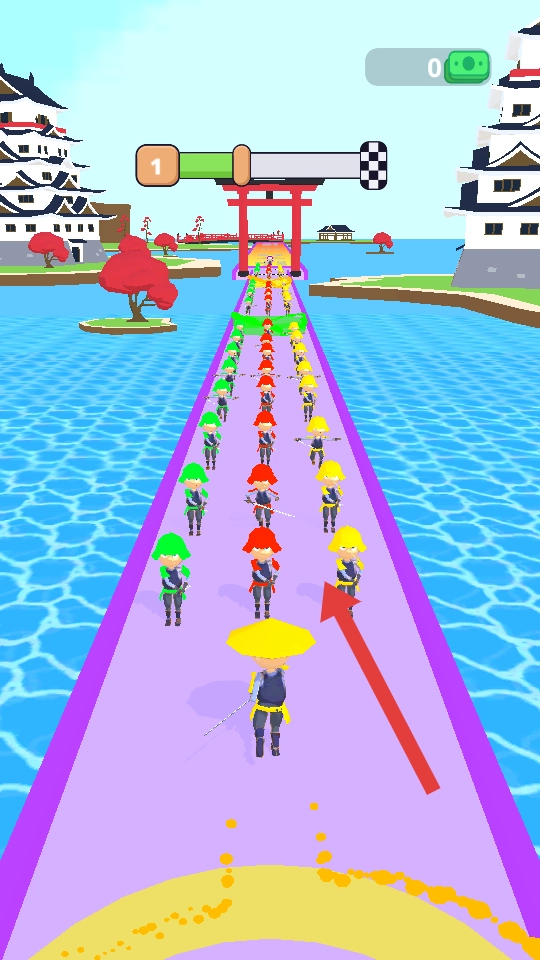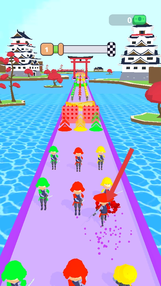 武士的移动过程中,需要斩击与自身颜色一致的敌人,这便是“颜色匹配的斩击机制”。成功斩击同色敌人,能够加快斩击速度,助力武士更迅猛地前进;反之,若未攻击到对应颜色的敌人,武士的速度就会减慢,从而打乱闯关节奏。