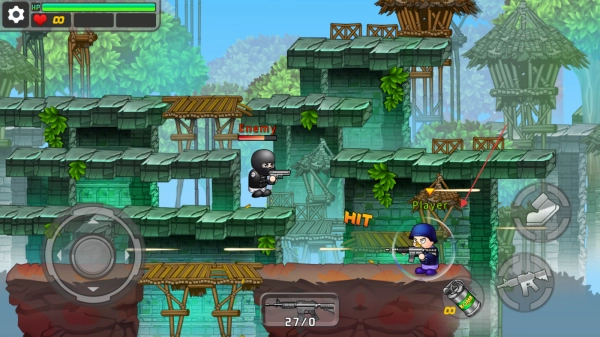 屏幕下方会显示武器弹药的剩余数量,当弹药不足时要及时寻找补给;此外,你还能点击手雷按钮,在恰当的时机投掷手雷来消灭敌人,从而完成关卡任务。