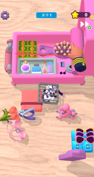 进入游戏后,先选择初始关卡,接着开启行李整理模式。在这个模式下,通过点击选中物品并拖动摆放的方式,按照分层原则把所有物品都摆放整齐。