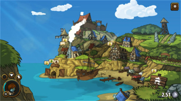 2、 借助六种武器、被动技能与独特戒指来转变你的游戏风格,还能购置装备,投资当地的博物馆、商店、渔业等各类项目。