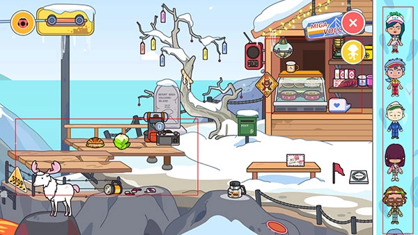 3、点击右上角的第一个头像,能够添加表情;点击第二个头像,则可以挑选人物并将其放置在商店的雪地上。