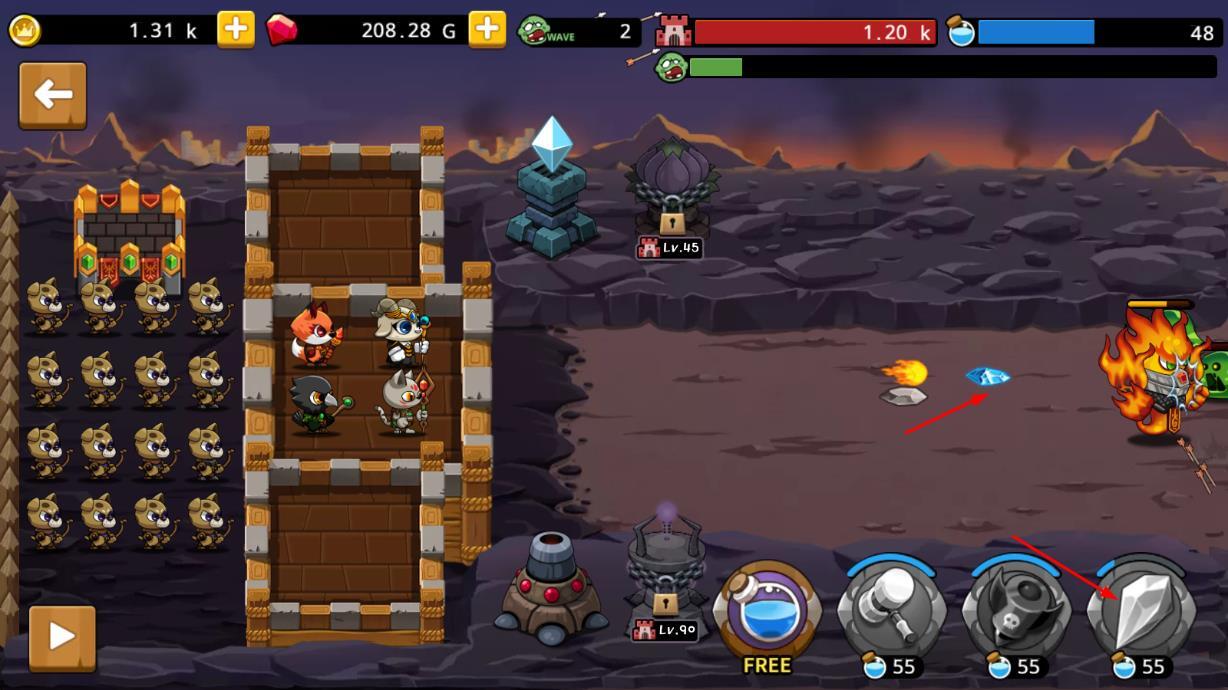 2、通过消耗资源来招募英雄与兵种,依据僵尸的不同类型,调配近战、远程单位相互配合进行战斗,并释放技能以阻挡僵尸的进攻。
