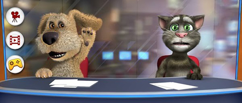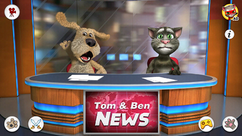 会说话的汤姆猫摇身一变,成了著名电视台的新闻主播!它携手好朋友本一同闪亮登台,为观众们带来专属他俩的直播节目。在直播过程中,你能让它们重复你所说的话,还可以借助摄像头录制视频,或者挑选已有的视频,在直播电视上播放。不仅如此,你还能以汤姆和本的身份对视频内容发表评论。这种充满创意的玩法,搭配汤姆和本那滑稽搞笑的表情动作,让游戏过程欢乐不停。除了说话,会说话的新闻互动玩法同样丰富多彩,像是用手指戳戳汤姆和本,按下交叉宝剑按钮,让汤姆和本“打一架”之类的。