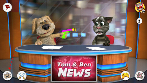 - 按下猫爪按钮,汤姆会使用水枪、气喇叭或者喷枪来骚扰本。不过,您得升级应用,才能看到这些动画。