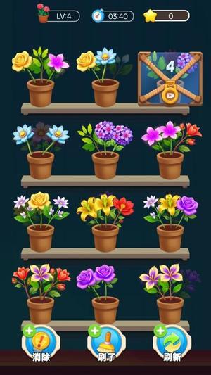 2. 新颖的花盆合并玩法,相邻花盆里的同种花朵能够触发连锁消除的效果。