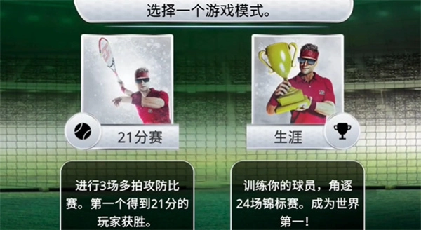 进入游戏后,初始阶段有两种游戏模式可供选择,分别是21分赛和生涯模式。