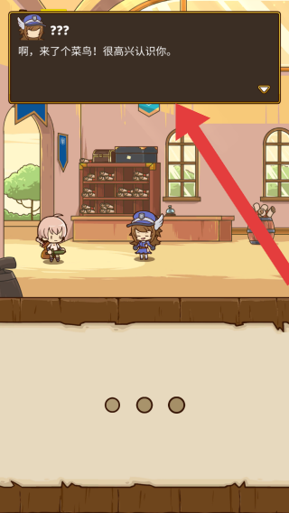 1、画面中呈现两个卡通角色,上方对话框内显示文字:“啊,来了个菜鸟!很高兴认识你”,点击该对话框即可推进至下一步。