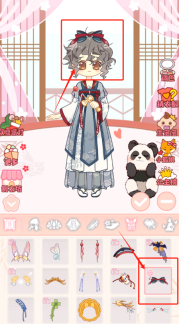 3、点击红框内的发饰为角色佩戴,下方还有不少其他饰品可以挑选,能让造型变得更丰富多样。