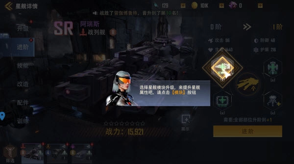 3、点击左侧的进阶图标,提高星舰的阶级。