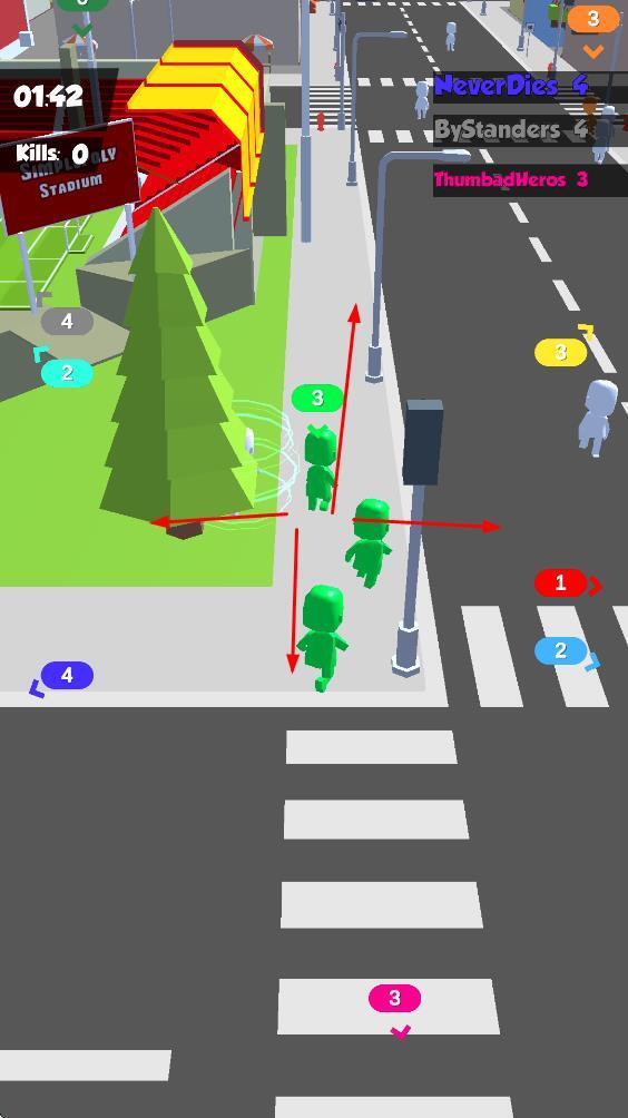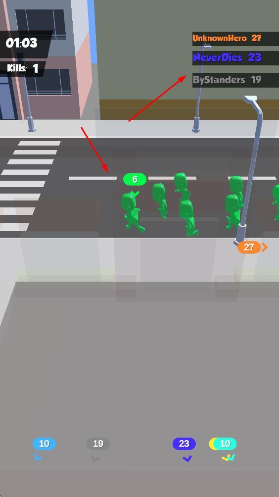 2、颜色识别敌友身份:小人阵营通过颜色来划分,玩家要依据人群的颜色辨别对方属于敌人还是朋友——相同颜色代表队友或自己所在的队伍,不同颜色则代表对手,这种清晰的视觉标记能助力玩家迅速做出判断。