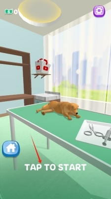 1、点击“TAP-TO-START”,开启宠物护理之旅,进入宠物诊疗室后,点击“开始游戏”按钮。