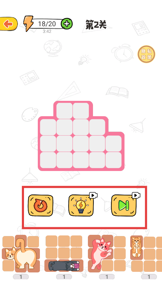 该游戏的核心玩法着重于对玩家空间思维能力的训练,值得一提的是,方块的移动轨迹经过了物理引擎的精心优化,使得方块滑动起来呈现出非常自然的效果。整个游戏以猫咪主题元素为线索,贯穿始终,每一幅拼图都栩栩如生地展现出可爱猫咪的生动姿态,萌趣十足。