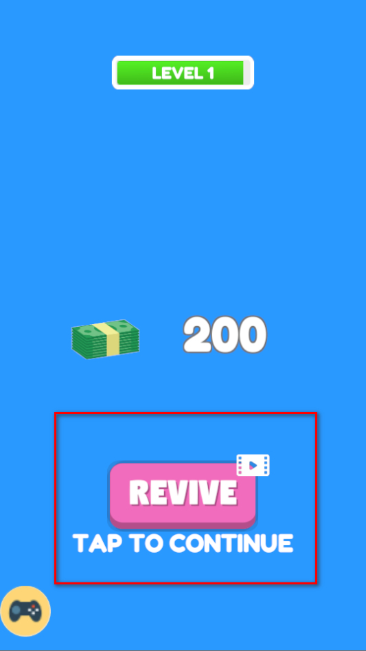 4、若操作失误导致挑战失败,可点击粉色的复活按钮,通过观看视频复活后继续游戏;也可以选择继续按钮,直接重新挑战该关卡。