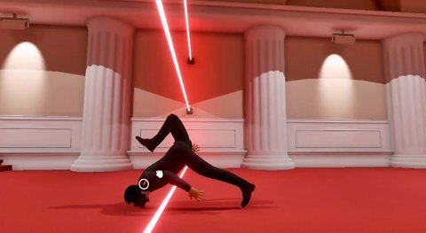 在《职业特工》里,你需要做的就是穿过一间屋子,爬过一个箱子,从几道间距很宽的红外线警报光束之间挤过去,登上几级楼梯,拿到一颗钻石,然后脱身。