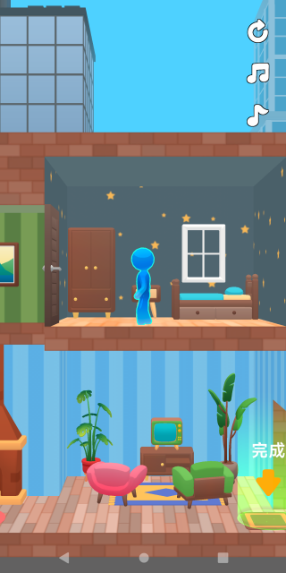 1.倾斜操控重力场:借助滑动屏幕或虚拟按键调节房屋的三维角度,利用重力的自然牵引力引导火柴人移动轨迹,实现行进路线的精准规划。
