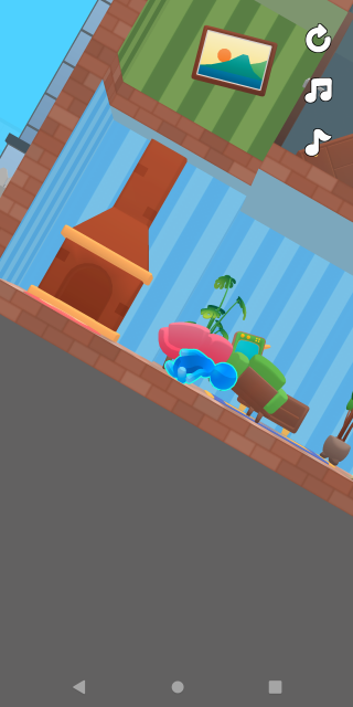 3. 就像下面这张图呈现的那样,当进入第二个关卡后,能很明显地察觉到房间的结构变得更为复杂了。和之前一样,你需要通过滑动屏幕来使房屋发生倾斜,以此让火柴人能够移动起来。