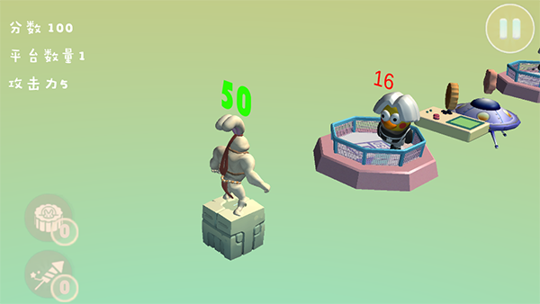 玉兔跳一跳是一款趣味十足的休闲娱乐游戏,在这里你将化身为一位身手矫健的玉兔勇士。游戏玩法与微信跳一跳相近,需要你精准掌控蓄力的力度和跳跃的准确性,稳稳落在目标位置上,同时还要击败各个台子上的不同敌人。在游戏里,你的跳跃精准度越高,头顶的力量指数就会随之提升,只有保持足够的力量值才能战胜所有敌人,不然就会直接游戏失败。感兴趣的小伙伴们,快来体验玉兔跳一跳的乐趣吧!