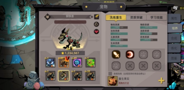 宠物能够借助战斗、喂食等途径获取经验,以此实现升级并提升自身属性。要是对宠物的属性不太满意,还能利用“重生果实”来进行“重铸”操作。