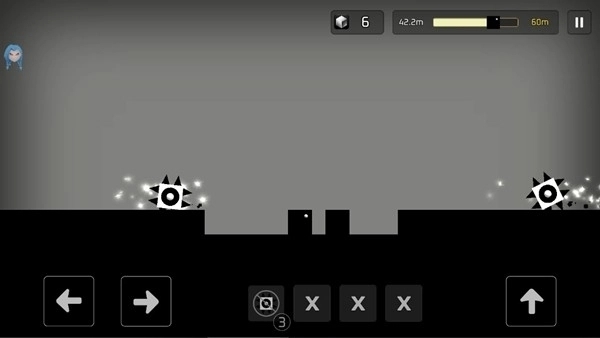 1、在由黑白几何图形构成的世界里自由穿梭跳跃,追寻自由的方向,玩家能够通过滑动屏幕或点击界面按钮来操控角色奔跑与跳跃。