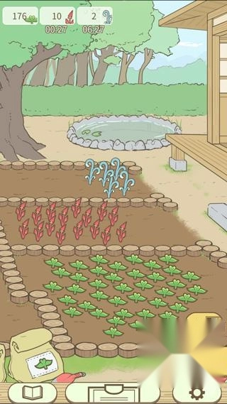 5、室外便是我们的药圃,这里生长着各种各样的药草,和农场类似,它们会按时生长,需要我们手动进行采集,我们也能够借助道具让右上角的小猫来帮忙打理。