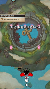 3、按住屏幕并移动到粉色物体前方后松开,即可吸入粉色物体。