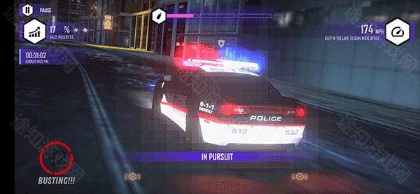4、比赛进行时会有警车展开追击,车手需加速摆脱,不然就可能遭遇拦截。