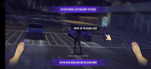 2、接着开启游戏,点击屏幕左右两边来调整方向,向上滑动屏幕就能使用氮气加速。