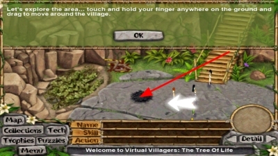 2、在村庄场景中,你可以用触摸并拖动的方式来探索村庄的不同区域,了解村庄各个地方的状况,寻找能够利用的资源或者需要建设的地点。