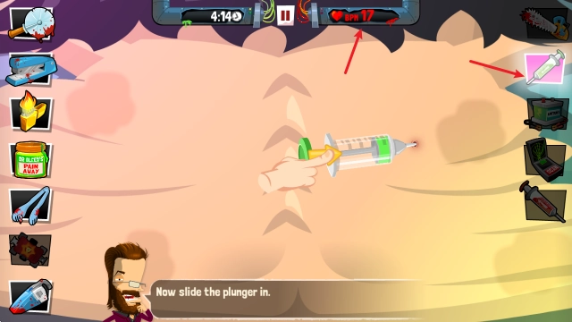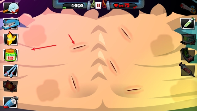 2、随着关卡的逐步推进,我们会解锁更多类型的攻击手段与药品,这些都能帮助我们应对难度更高的外科手术挑战。