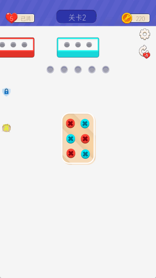 1. 玩家需查看盒子与钉子的颜色,使二者颜色匹配,然后迅速拔出相应钉子,即可轻松完成关卡挑战。