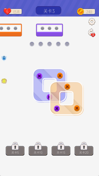 3、各类道具可助力玩家迅速通关,一旦出现失误,玩家能够借助道具加以补救,重新开启拔钉子的操作。