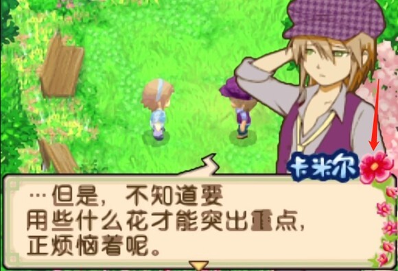 1、若要结婚,首先得提高结婚对象的好感度,可借助对话框的花花进行判断,颜色按如下顺序判别