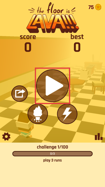 1、启动游戏后,点击主界面的播放按钮进入冒险模式,挑战在滚烫的熔岩之间跳跃求生吧。
