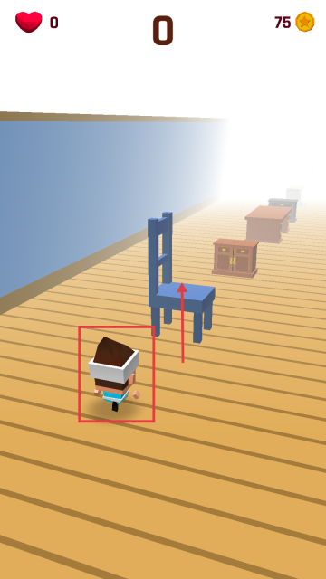 2、在操作界面里,要是碰到蓝色椅子这类家具,得点击或滑动屏幕,让角色跳上去,这样就能防止被撞倒了。