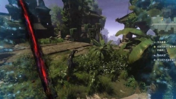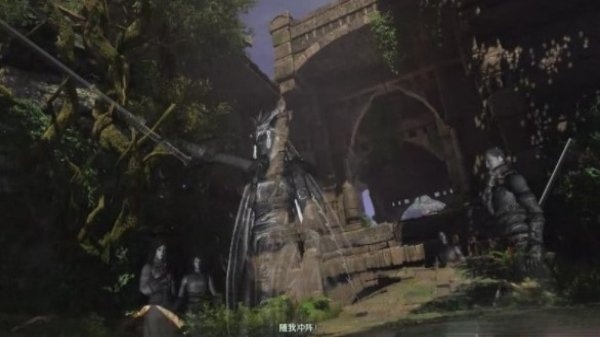 击败敌人后继续前行,沿着石柱跳到对面的二层平台,走没多久就会触发一段剧情,出现的是先祖遗留的残魂。