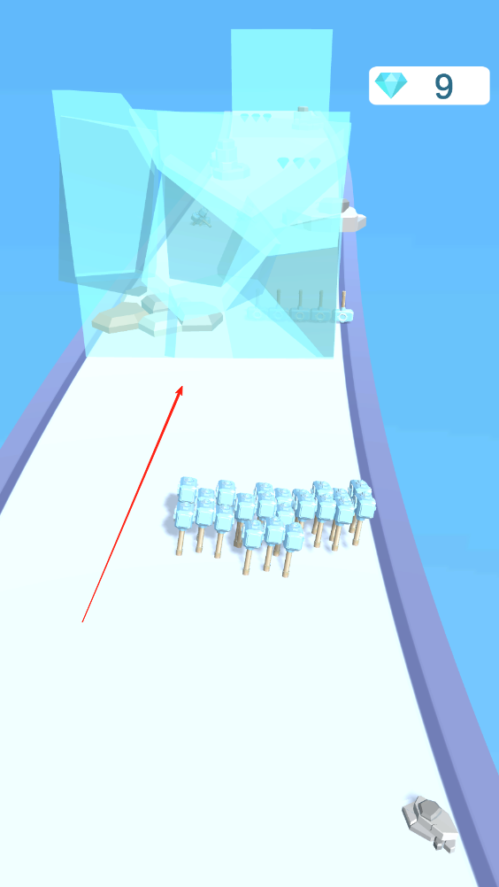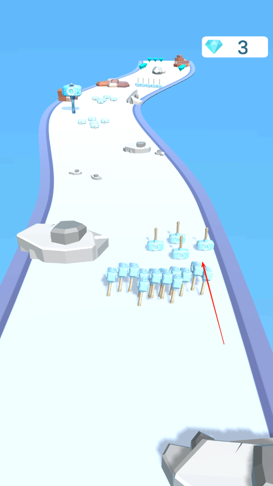 当遇到障碍物时,锤子会自动消耗一个来击碎屏障,随后继续前进,同时继续收集锤子和钻石。