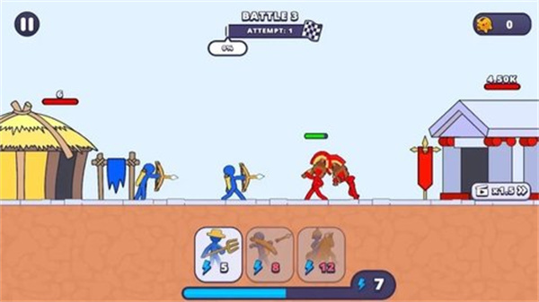 火柴人大战时代之战是一款热血刺激的动作冒险竞技游戏。玩家将化身火柴人指挥官,投身于充满策略与激情的对战世界。每日匹配真实玩家,展开高强度PVP对抗;施展华丽大招,调配多样兵力,利用地形出奇制胜。