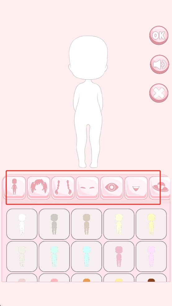 2、进入编辑页面后,你可以利用上方的发型、五官等分类选项,再搭配下方可选的肤色,来设计虚拟角色的外观,让这个虚拟娃娃慢慢呈现出独一无二的样子。